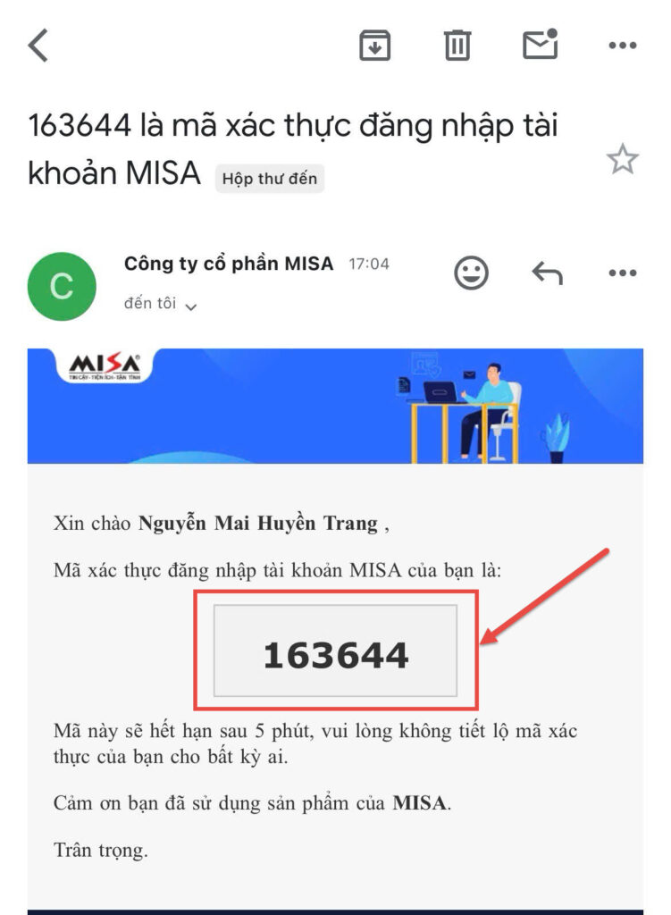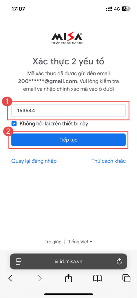 Lưu ý: Đối với trường hợp nhập mã xác thực 2FA qua Email trên máy tính, người dùng thao tác tương tự như hướng dẫn trên.