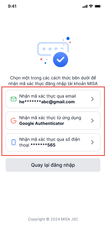 2. Hướng dẫn người dùng thiết lập bảo mật 2 lớp trên MISA ID – giai đoạn 2