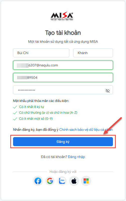 - Sau đó nhấn Đăng ký.