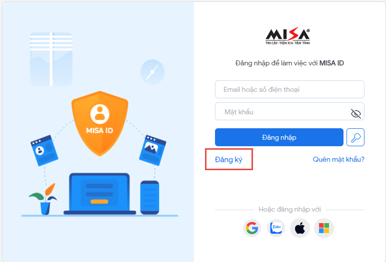 - Để có thể truy cập và sử dụng MISA Partner, anh/chị cần đăng ký tài khoản MISA ID.