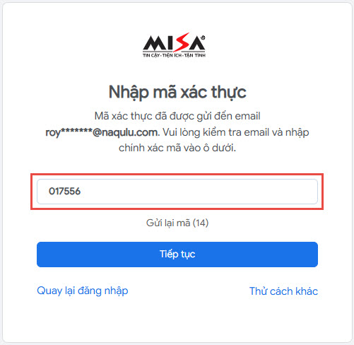 - Hệ thống sẽ gửi mã xác thực gồm 6 chữ số về email của anh/chị, vui lòng truy cập để lấy mã và nhập vào ô xác thực.