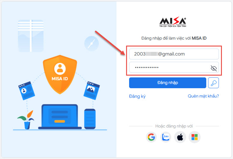 - Nhập thông tin tài khoản rồi nhấn Đăng nhập.