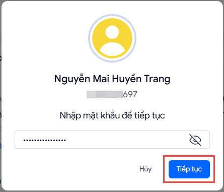 - Anh/chị nhập mật khẩu rồi nhấn Tiếp tục.