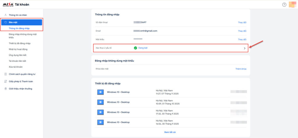 - MISA ID cho phép người dùng tắt xác thực hai yếu tố cho tài khoản của mình.
